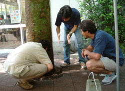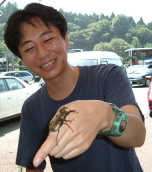 | 那須ICの手前、黒磯PAに到着したのは9:00AM。早い・・・。とりあえず隊員たちの現在位置を確認すべく、電話をする。 Yas&Kei…東北道を順調に北上中。10:00AM前には黒磯ICに着くのでは・・・。 うり坊…仙台を出発し、東北道を順調に南下中。 SAYUKI&Kibun…いまだ首都高から抜け出せず。 11郎…初参加の奴隷1号。バイクのため、携帯に出られず。 みーめん…初参加の奴隷2号。携帯電話を持っていない。 なんともコメントのしがたい面々である。 小山隊長と日陰のベンチに座りお互いの近況を語り合う。それにしても陽射しが強くいい天気。 「キャンプはやっぱり晴れてなくっちゃね。」 晴れ男・岡本、今日も本領発揮です。 そうこうしているうちに、Yas&Kei到着。昨日勤め先退職に伴う送別会に主役として参加していたわりには二日酔いもなく元気そう。さては手を抜いて飲んでいたのか? 「みーめんですけど、いま何処にいられます?」 そうだった。あいつ携帯電話もっていなかったんだ。いまどき珍しい携帯を持たない男。希少価値が着くかも・・・。みーめんの現在位置は黒磯PAの手前、上河内SAだというので、黒磯PAで合流することに。 今回初参加のみーめんは実は2年も前からくや探奴隷候補としてうり坊が推薦していた逸材なのだ。その模様はこちらに。その後も奴隷として引き入れるためにことあるごとに誘ってたんだけど、なかなか都合が合わなくて、今回ようやく初参加なのだ。 「痛っ、痛いっす!」 クワガタの足がみーめんの肌に引っかかり、痛みを伴ったとか。ご愁傷様。 心優しいくや探の面々はクワガタをそっと逃がしてあげにもとの樹へ。 「あれ?メスもいるよ!」 きっと今頃は仲むつまじく・・・もう死んでるか。 |