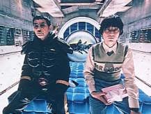 新感覚エンターテイメントムービー「PATY7」を観た。監督は鮫肌男と桃尻女の石井克人、主演は永瀬正敏&浅野忠信。映画人として勢いのある面々が集まっての映画だけに期待で胸がいっぱい。それがのっけからPOPではじけてて、アメリカンコミックの薫りがいっぱいのアニメーションといい、それがどうしたと言いたくなるような会話のやりとりといい、楽しくて仕方ない。新感覚という言葉は映像的であり、展開であり、役者の新しい一面であり、それら全てを包括した位置付けなのだ。センスがひかる映画である。 よくありがちなベタな話とエキセントリックな妙な話が鏡一枚を隔てて同時進行する感覚。スイッチワークの間も絶妙で、小気味良いテンポを作り出している。 奇抜な衣装も突飛なエピソードも、新感覚の下で絶妙にシャッフルされていて、うまいハーモニーを醸し出している。センスの映画だけに観る人によっては違う印象を持つだろうけど、ぼくにはとても面白く笑いと驚嘆の止まらぬ映画でした。 このPATYを楽しめるか否かはあなたのセンスにかかっています。 |