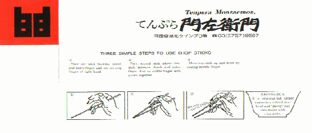 箸袋に箸の使いかたが記されている。注釈は英語。さすが国際空港に出店しているお店だけあって、インターナショナル。