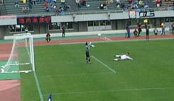 ところがっ!エメルソン交代直後、DF森が今日2枚目のイエローカードで退場。10人対11人に・・・。 最大のヤマ場、アルビレックスのFKはゴールマウスのはるか上。今日のコンサドーレは枠に行かないアルビレックスのシュートに救われたという感じでしょうか。 |