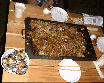 2日目の朝食はおかあさん手作りのパン。これを岡本持参の七輪で焼いて食べた。これもまた美味で、本当にキャンプなのかと疑ってしまう。Kunnyは七輪をすっかり気に入ってしまい、家に帰っても毎朝七輪でパンを焼くと言い出す始末。もしそうなったとしても、七輪に炭火を起こすのはおかあさんの仕事になるだろうと思いながら、朝から七輪でパンを焼き、ちまきを背負って通学する女子大生を想像すると、見てみたい気もするのであった。