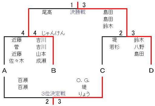 で、結果はというとどの試合も接戦。チーム分けが上手くいったのかどうかは疑問だが、各チームともカラーは異なっていたのに面白い試合となったのだ。優勝はDチーム。得点王は島田だった。
