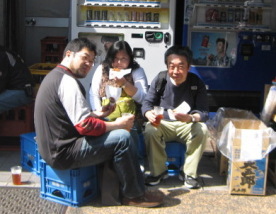 ぼくらは決して昼から居酒屋に入る気なんてない・・・と思う。でも、呼び込みにとっては明らかに飲む気マンマンの3人連れに見えるらしい。しかも誘われるとどんどんその気になっていく。ビール、ビール・・・。