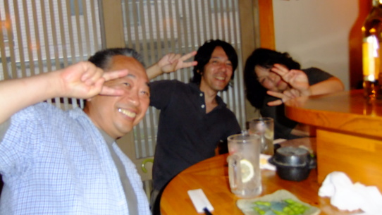 京成高砂から電車で日本橋まで移動。するとホームでSAYUKIが踊りだす。ご亭主・Kibunに言われた一言を吹き飛ばすオリジナルダンス『ごくつぶし音頭』。専業主婦の思いの丈が詰まった、ナイスな踊り。寅さんまつりのやぐらの上で披露したいくらい。 電車に乗ってたら、押上、浅草、浅草橋で大量の浴衣女性が乗ってきた。ちょうど隅田川の花火大会が終わったところだったそうな。花火は見れなかったけど、たくさんの浴衣女性を見ることができたのは、とてもよい目の保養に。 日本橋で入った飲み屋では小山隊長が突然歌いだす。『しゃっくりを止めて〜Please stop hiccuping〜』。それに併せてぼくもロックステディ調のウラ打ちしゃっくり。なんだかくや探、ミュージカル化しているような。