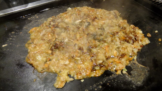 「水炊きって書いてますね。どうやら水炊き屋のようです」 「そうか、もんじゃあきらめて水炊きに乗り換えるってのはありかな?」 「反対岸まで泳いで渡れば、ちょうど腹も減るかもね」 「でも、ずぶ濡れで店に行って、入れてくれるかな?」 「その前に泳ぎ着く自信がないんですけど・・・」 ぐるりと大きく一回りし、腹の具合もちょうどよく空いてきたので、意を決してもんじゃストリート突入です。 「人気の店ってやっぱり並んでるね」 「ちょうどのども渇いてきたから、並んでまでは待ちたくないかな」 「かといって、がらがらの店は危険かもよ」 「じゃあ、並んでないけど客が適度に入ってる店ってことだね」 ということで、『ばんび4号店』に腰を落ち着ける。 メニューにはいろんなトッピングの組み合わせ例が書いてあるようだけど、そんなのは観光できたようなもんじゃ初心者が見るものなのさ。ぼくたちは前に上野で発見した必殺のトッピングがあるのよ。ビールに最高のトッピング『めんたいこ・もち・チーズ』さっ! 店員さんに颯爽と注文すると、なにやらニヤリ。メニューを見ていた11郎がすかさず報告。 「めんたいこ・もち・チーズの組み合わせが人気No.1って書いてます」 「なんだと?ぼくたちが上野で発見したレピシが2年のときを経て、月島にまで浸透したというのか?」 「どうやら私たちが発見したわけじゃないみたい。かなりメジャーな組み合わせだったのかも・・・」 なんだかんだ言っても『めんたいこ・もち・チーズ』は美味いなぁ。ほんとビールが進みます。でも、このままだとなんかくやしい。『めんたいこ・もち・チーズ』を超えるような、ぼくたちオリジナルのトッピングを考案してやる。 まずは11郎のチョイスから。 「静岡生まれとしてはやっぱり桜えび。そして今が旬の牡蠣と合わせて海鮮風で」 おお、磯の香りが口に広がるではないか。Rのつく月限定のお味。 続いてSAYUKI。 「ここはシンプルにさきイカと紅しょうが」 こりゃまた素直なお味です。これを食べ較べることで、店の実力がわかってしまうね。 そしてぼく。 「ずっと気になってたコンビーフ。語呂的にもコーンを添えて」 コンビーフとコーンって選択はいいんだけど、味にパンチがいまひとつない。マヨネーズでもぶち込んだほうがよかったかな?