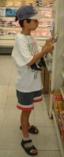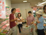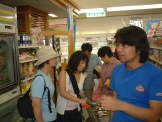 | 毎度のことだけど、みんな思いついたものを全てカゴに入れる習性があるようで、カゴは見る見るうちに満載状態。 「ねぇねぇ、おかもっちゃん。メンチカツが1個100円って安いよね。買わなきゃ損だよね。」 「ハイハイ、カゴに入れてよ。」 しばらくすると、 「ねぇねぇ、おかもっちゃん。えびカツが1個100円って安いよね。買わなきゃ損だよね。」 「ハイハイ、カゴに入れてよ。」 これを見ていたSAYUKIが一言。 「あんたね、またお子ちゃま料理ばっかり!それに2・3枚ずつ持ってきてもダメでしょ。人数分持って来なさいよっ!」 「え〜っ、何人いるの〜ぉ?おれ、わかんないよ〜」 10人もの大所帯がてんでバラバラに狭い店内を騒ぎまくっているのだから、きっと店員さんも迷惑に思ったに違いないけど、たくさん金落としてるのだから、許してくれるに違いない。 店内の有線からサザンオールスターズの『TSUNAMI』が流れてきた。『TSUNAMI』は小山隊長がこよなく愛す歌で、以前ENOの送別会と称して飲んだときはカラオケBOXで8回も聴かされた覚えが・・・。すると、有線にあわせてさとし&みおが『TSUNAMI』を歌っているではないか。 「だって、とうさんがずーっと練習してるから、自然と覚えちゃうんだよね。」 小山家では連日連夜『TSUNAMI』の大合唱らしい。 そんな話をしながらふとさとしの足元に目をやると、足首にネットと湿布があるではないか。 「さとし、ツーファーになったの?とうちゃんの遺伝?」 「違うよ。ただの捻挫だよ!」 さとしもいまあがいたとて、あと20年もすれば立派なツーファーに成長するというのにのぉ。 結局、大混乱のまま食材の買出しは終了。次は酒の買出しの番だが、このまま全員で酒を買いに行っても再び収拾がつかなくなることが予想されたので、酒の買出しは後にして、とりあえずキャンプ場へ向かったのだった。 |