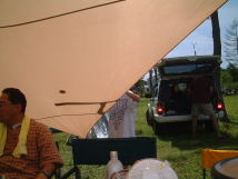 | どうだ!これが本物の夕張メロンだぁ! 生産者は水戸松一。ぼくのおじさんだぁ! みなの者、ひれ伏すがいい! と、さとし&みおはそそくさとテントの中へ。 「あいつらメロン食べないんだよなぁ・・・」 小山隊長は申し訳なさそうにする。なになに、Kids受けはしなかったけれど、その他の者の至福の表情を見ると、ぼくも満足なのだ。 夜の歓談はさらに続くんだけど、何を話したかはもう忘れた・・・。いつものことだけど、酒が入ってたから。 「あれ?Kibunは?」 「なんか眠いって言って先にテントに入った。よく眠れるもんだ。」 |