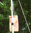 まず、一週間前から塩揉み&寝かし&水吐きを施した豚肉の塊にタコ糸を通します。タコ糸はA-Coopの精肉部から特別に頂戴した、由緒正しいタコ糸です。 つぎに、肉を天日に干します。肉を干しているときは、肉を狙ったカラスや不届き者が肉の周囲を徘徊するので、肉を奪われないように注意をしましょう。 |