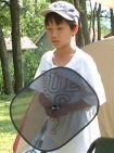 | すっかりお休みモードの三十路隊員を尻目に、さとし&みおは「タープ・ピンボール」につづき、トンボ取りと一人遊びを追及。しかしいよいよ退屈になったようで、三十路隊員に危害を加え始めたので、三十路隊員も活動に移ることにしたのだ。 |
