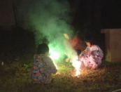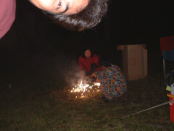 | 今回は子供が来ているのでやらないと思っていたので、シャッターチャンスを逃してしまったけど、やったよやった、小山隊長が。これができなきゃくや探の隊長にはなれないんだよね。 良い子の皆様、決して真似をしないで下さい。そして、花火終了後はきちんと後片付けを。 |