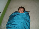 | ひとしきり話をし、食事の後片付けをしたとたんにみんな睡魔に襲われる。あれだけいろんなことがあったんだもん、無理もないか。今夜の寝床の平屋建てはかなり広かったので、みんな思い思いの場所にエントリーして眠りについたのだ。 |