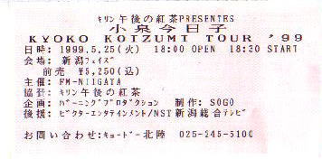 STANDING予定が急遽イス入りとなり、かなり、ほっ。ナマKYON2は'97年の「地球ゴージャス」公演以来。LIVEとなると、'91年の渋谷公会堂以来。お久し振りのKYON2は、三十路のいまでもかわいらしさはそのままに、等身大のKYON2を見せてくれたのだ。ずーっと好きです。 |
