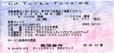 | '99年は計7本のLIVEを観てきました。さすがにLIVEは流行っていれば観るというわけではなく、本当に好きなARTISTを厳選して観ているので、なにをされてもOK的なところってあるよね。でも、'99年に観たLIVEはどれも秀逸でした。それぞれにちょっとしたコメントを加えておきます。 それにしても、怒涛の3日連続LIVEは疲れたけど最高でした。 順番は観た順でBESTな順番ではありません。 |