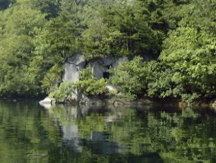 | すっかり秋になってしまったけれど、毎年恒例の奥利根湖ぶらり旅に出た。去年までとは違い、今年は船橋スタートで東京を抜けなければならないと気負って出発したのだが、6:30AM発で4時間強。なんとか無事にたどり着くことができた。出発時間がこれより遅ければ、もっと時間がかかったんだろうなぁ。 1年ぶりの奥利根湖は秋の気配に満ちあふれていた。さすがに紅葉はまだだったけど、風や空気が秋色だった。それにしても、今年は水がいっぱいある。去年の渇水が嘘のよう。夏場にきた大きな台風が確実に山に雨を落として行ったそうだ。去年と水位を比較してみると・・・(この岩はぼくには水位の目安になっているのだ)、全然違う。