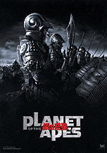 PLANET OF THE APES」を理解した…つもりである。でも、受け入れることのできない事実が残ってしまう。とんでもないものを創ってくれたもんだ。目からうろこはおろか、内臓までもが落ちてしまいそうだ。昨日「猿の惑星」第一作のDVDを観て予習したというのに、そんなもんなんの意味もないではないか。面白かった。ちょっとSTORYが流暢過ぎるかとも思ったり、先読みできたりもしたが、伏線はきっちりまとめられ、上手いもんだと感心したりもしたが、そのすべてこそが大いなる伏線だったというのか。 「やられた・・・」 すべてにおいてそう思った。見事なまでに統一された格式美。表情はもちろんのこと、動きまでもが忠実な類人猿たち。ものすごいったらありゃしない。ティム・バートンに感服。 そしてティム・ロス。彼が演じるセード将軍は完全に主人公レオを喰っていたぞ。あのメイクながら、生き生きとした表情を見せてくれる。Mr.Orangeの頃から大好きです。 それにしても「驚愕」という言葉がピッタリな新生「猿の惑星 PLANET OF THE APES」。その善し悪しはみんなの目で確かめてください。すごすぎるから・・・。 |