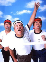 ぼくが高校生のころ、日テレ系で三宅裕司の「いい加減にします」を放映してたんだよな。最初は植木等が出演していたのが、いつの間にか伊東四朗に変わって。とても面白かったのに、半年で終わったんだよなぁ。今おしゃれ関係やってる枠。その復刻版みたいのが今回の舞台。2というくらいだから当然1が4年前にあって、それはナマでは観られなかったが、ビデオでチェックはしてたのだ。面白かった。 で、今回4年ぶりに復活。ゲストとして小倉久寛を迎えるんだけど、ゲストというよりいて当然のメンバーなのだ。周知の中の後輩だけにやり易かろうし。逆かな? それにしても伊東四朗の勢力的な舞台活動はすごい。昨年は小松政夫とのコンビを復活させたと思えば、三谷幸喜の「BN☆GT」で大暴れし、そしてこれだ。当然TVも継続して出演しているんだから、まさに役者の鑑。そんな伊東四朗がボケるんだから、三宅も心してツッコむ。小倉は負けじとボケたおす。その必死さがまた面白い。 ネタ的には同じボケを何度も繰り返すバカネタはちょっとつらかった。けど、変幻自在のボケが連なりだしてからは笑いっぱなし。特にTV時代から続くどうしても歌ってしまう2人のコントは伊東・三宅コンビの伝家の宝刀。これが始まったらただただ笑うしかないのだ。 今回は三宅・小倉のコントライブ「タイトルマッチ」と同様に楽屋裏としてコントの合間の着替え風景を観せたのだけど、ここでの会話も面白かった。話題はどうでもいいようなことなんだけどね。全部アドリブなのかなぁ。毎日違うのかなぁなどと勘ぐったりして。 小人数のコントだけに散漫とならなかったことで面白さが倍増したし、三宅が余計な芸達者ぶりを披露せず笑いに集中していた分、SETものや三宅・小倉コンビの時よりも面白かった。やはりこれも伊東四朗のなせる業か。 東八郎亡く、萩本欽一潜む現在の下町の笑いを伊東四朗が支えている。そんな印象を強く感じるコントライブだった。三宅裕司、小倉久寛、後継に選ばれてるんだから、いっぱいがんばれ! |
