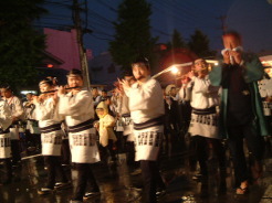 それにしても、橋幸夫。青森山田高校(卓球の愛ちゃんのいる)の広告塔として登場。でも、橋幸夫節に「らっせぇら〜ぁ」は似合わなかった。 跳人は地元では高校生しかやらないらしいんだけど、高校生に混じって跳ねてみたいなぁ。 帰り道、もう時間的に終わっているはずの弘前ねぷたに遭遇。やっぱ若者はいなせだなぁ。 |