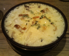 | 海堂尊「夢見る黄金地球儀」を読む(09.11.9) 【『artな戯れ言2009』へ移動】 ◇ 札幌に転勤して以来、自炊をする機会があまりなかったが、 このところ自炊にはまっている。 きっかけは行きつけの飲み屋のマスターが教えてくれた塩辛鍋。 これが美味しかったのでいろいろアレンジしてたら、 蒸し鍋にしたらどうなるかってところに行き着いて、 購入したのが今流行のタジン鍋。 さっそくオリジナル塩辛蒸し鍋を作ってみた。 <材料> 白菜・・・1/8個、もやし・・・1/3袋 アスパラ・・・3本、キムチ・・・冷蔵庫にあった余りモノ 鶏のハツ(心臓)・・・適量、塩辛・・・135g(市販の一袋) これをタジン鍋に入れて火をかけるだけ。 鮭と牡蠣と舞茸も買ったんだけど、 鍋が小さくて入りきらなかった。 出来上がりがこちら。 これが実に美味かった。 塩辛のイカが柔らかく仕上がって絶品。 塩辛の臭みが苦手な方は生姜を入れてみればいいかも。 なんか、タジン鍋使ってあれこれ試してみたくなった。 でもなぁ、ホーマックで買ったタジン鍋(大)、小さいんだよなぁ。 社長に言ってデカいサイズを仕入れてもらおうかな。 TOPへ |