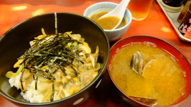 | 東宝セレソンデラックス「わらいのまち」を観る(11.10.1) 【『artな戯れ言2011』へ移動】 ◇ 『さっぽろオータムフェスト2011』、ラストスパートです。 今回はがっつりランチってことで、飯と汁。 せたな町の「うにごはん」(500円)と上ノ国町の「あわび汁」(500円)。 うにごはんはいつもながらの安定したお味で。 うにごはんを出している町がいくつかあったので、 来年は一堂に集めて食べ較べしようかな。 あわび汁はあわびが中央に鎮座し、 豆腐、ねぎ、ふき、ここごみ(?)らがどっさり。 これは食い応えがある。 あわび本体よりもワタのほうが味わい深く好きかも。 根っからのツーファーなんだろうなぁ・・・ぼく。 TOPへ |