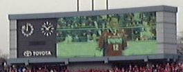 | 何故だろうか、新潟陸上競技場でアルビレックスVSレッズ戦がある日に限って、ぼくは隣りにあるりゅーとぴあに行っている。アルビレックスVSレッズ戦も観戦したいんだけどなぁ・・・。ということで、前回(こちら)に続き今回も歩道橋の上から観戦したのだ。 ピッチを見てまず驚いたのは、マルコメ君がいること。 「あれっ?小野って日本代表合宿参加のため出場しないんじゃなかったっけ?」 しかし、どうみてもピッチにいるのは背番号8の小野信二だった。かなり得した気分。岡野も走っているぞ。 前回はまさかのアルビ快進撃で前半だけで4得点と大番狂わせの試合だったけど、今日はぼくが見ていた前半20分くらいまでは落ち着いた試合だった。 前回ぼくが観にいったイッセー尾形は開演が2:00pmからで前半を全部観れたけど、今回は1:30pm開演のため、途中までしかサッカー観れなかったよう。 どっちが勝ったのだろうか・・・。えっ?またレッズが負けたの? それにしても、歩道橋から良く見えるでしょ。手前のゴールまではっきり見える特等席なのだ。 |