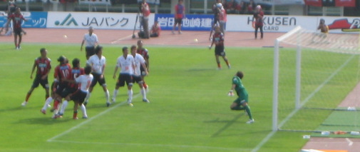 これで断然セットプレー頼みになったコンサ。それでも、セットプレーのチャンスが幾度もあるもんだから、もしやの期待に胸いっぱい。なのに、箕輪のロングスローのこぼれ球を拾ったキャプテン・芳賀が二人かわしたところで足がかかったのに・・・、シミュレーション?イエロー?二枚目?退場???