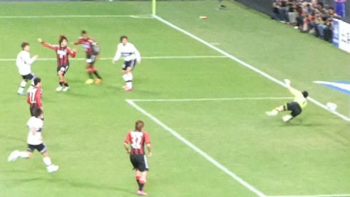そして後半、PKエリア手前でプッシングしてFK献上。これを決められ逆転。J1のフリーキックの精度を考えると、あそこでファウルしちゃいかんよ、ジェイド・ノース。 そこから先はがっつり引いた浦和の守備にことごとく跳ね返されるコンサ攻撃陣。うっちーをキリノに、前田を大島に、祐介を榊に替えて攻めるも得点できず。交代選手、もっとガツガツ行ってもいいと思うんだけど、中盤でゲームを組み立てられる選手がいなくなったので厳しかったか。