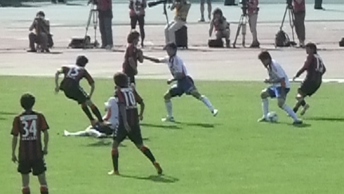 序盤こそ高い位置からの連動したプレスでボールを奪い、いい形の攻めができた。しかし、ボールを散らされ、1対1の局面を作られると、個々の力量は歴然で、いともたやすく抜かれてしまう。悔しいけど、これが世界と闘ったことのあるチームと、ぎりぎりで昇格したチームの差なのだろう。